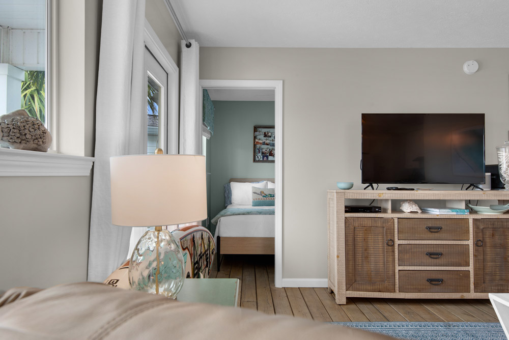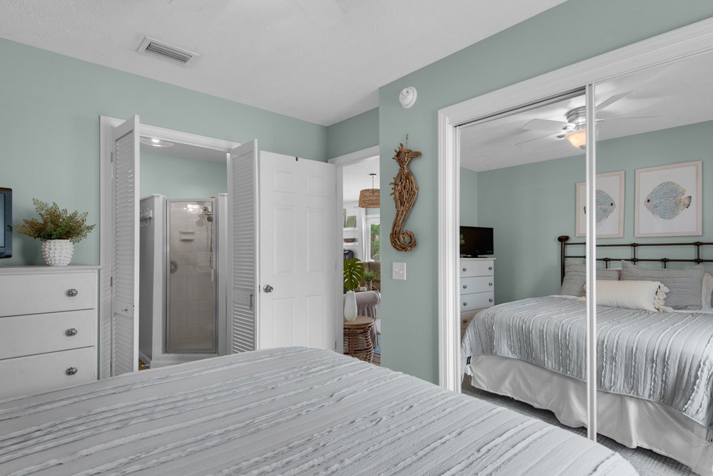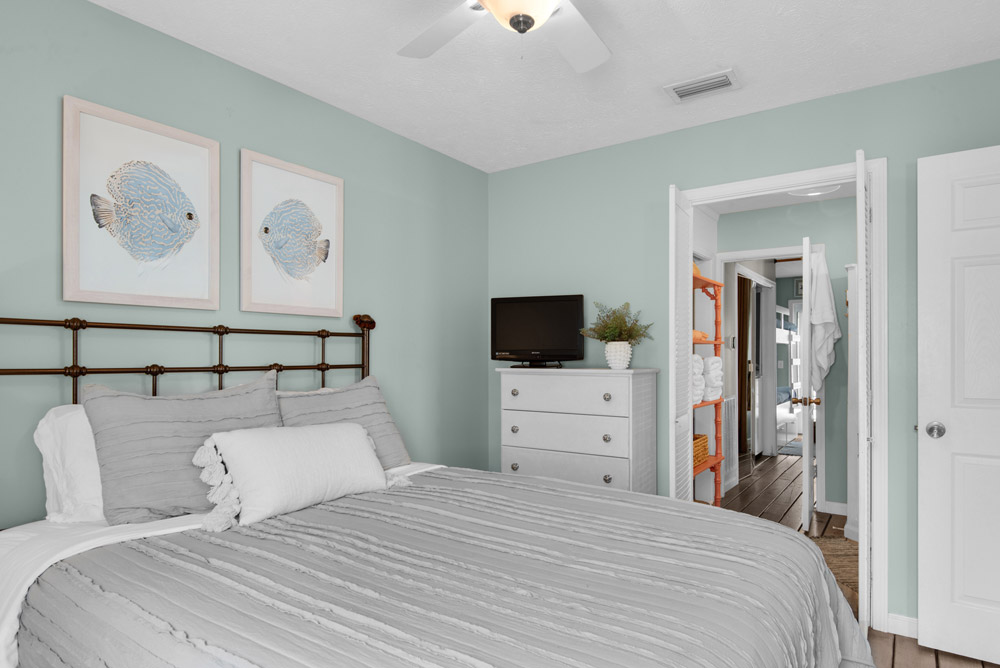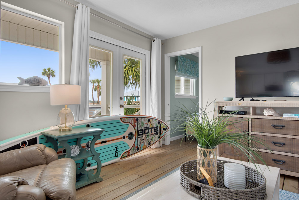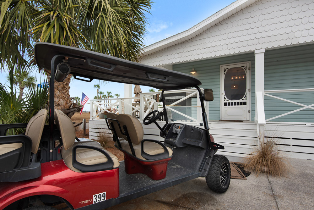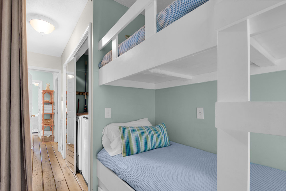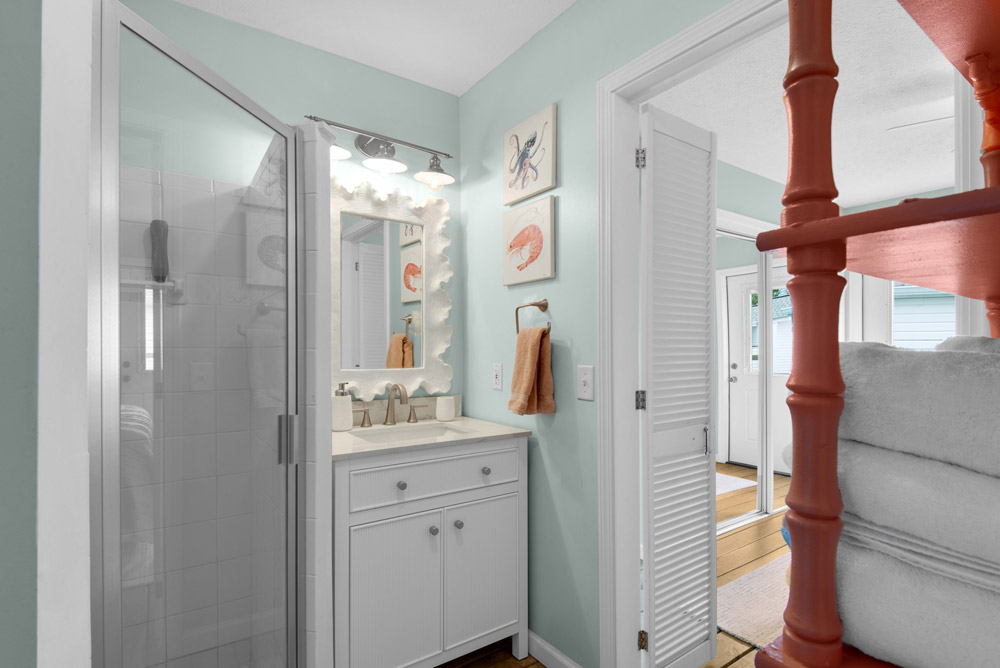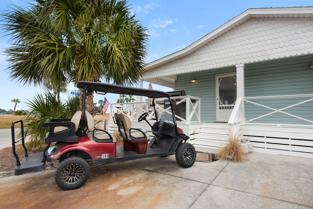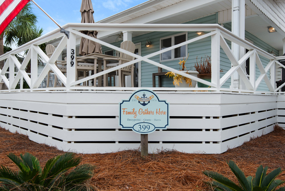 399 sleeps six (6) comfortably. There are two bedrooms (1 queen and 1 doube), and a bunkbed hallway – usually for teens, kids or yourg adults. The house has one full bathroom and a half bath (and an outside shower with hot and cold water for the guys!) – make it easy for everyone to get ready for dinner at any of the fabulous seafood restaurants up and down the beach.